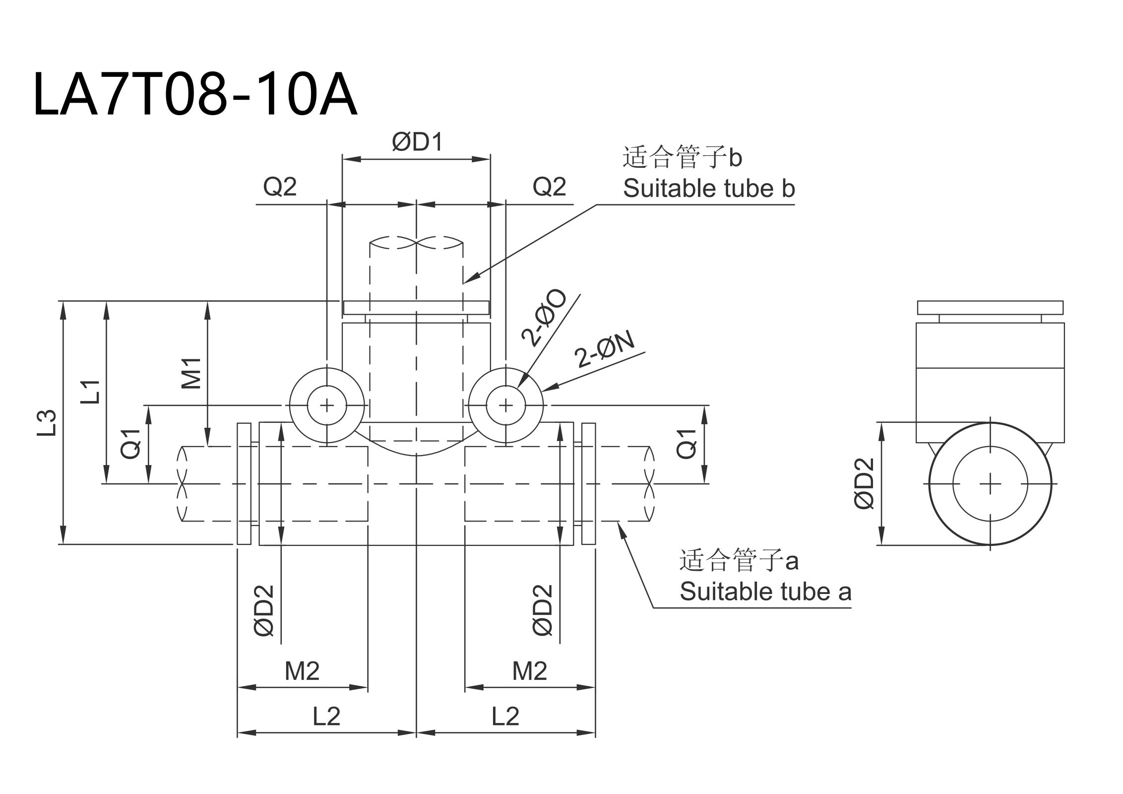 | Tube O.D.mm | Model | ØD1*(mm) | ØD2(mm) | L1(mm) | L2(mm) | L3(mm) | M1(mm) | M2(mm) | Q1(mm) | Q2(mm) | Q3(mm) | ØN(mm) | Effective cross-sectional area mm | Minimum Hole Diameter(mm) | Weight | ||