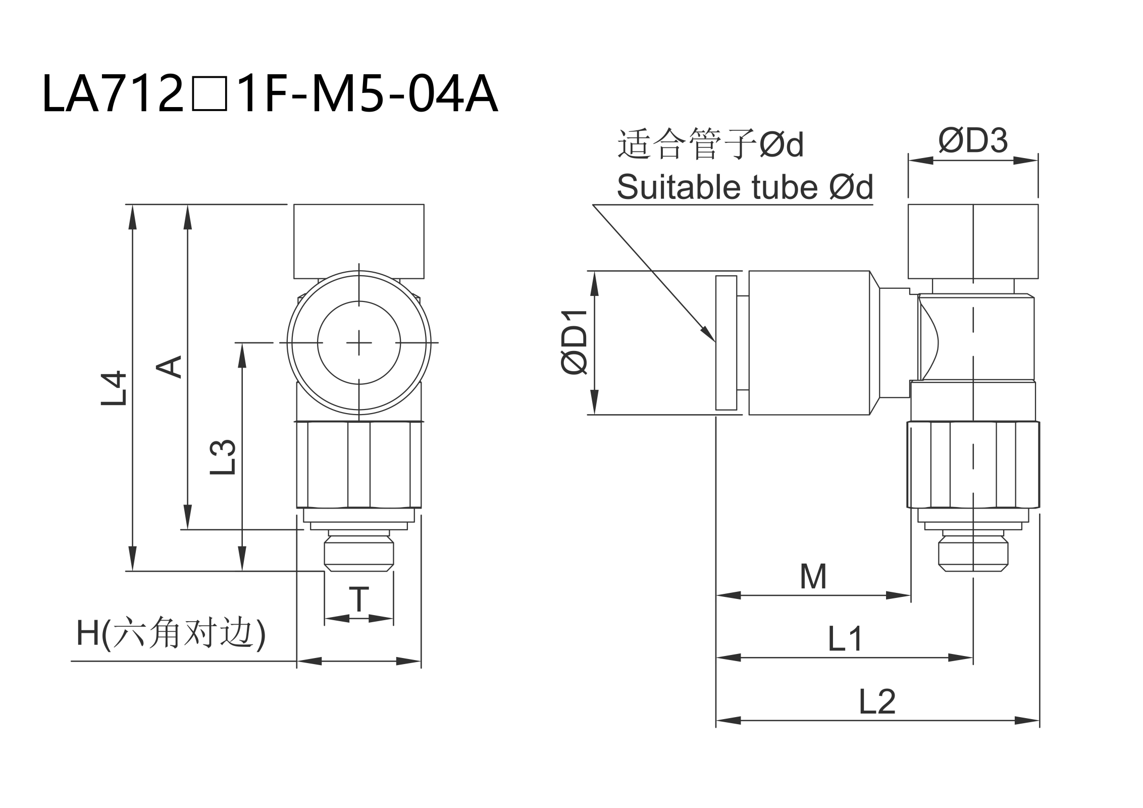 | Ød(mm) | Model | T | H(mm) | ØD1(mm) | ØD3(mm) | L1(mm) | L2(mm) | L3(mm) | L4¹(mm) | A² (mm) | M(mm) | Weight | ||
