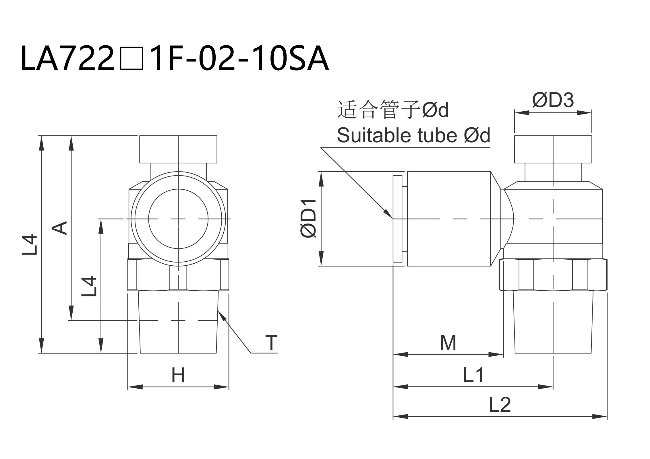 | Ød(mm) | Model | T | H(mm) | ØD1(mm) | ØD3(mm) | L1(mm) | L2(mm) | L3(mm) | L4¹(mm) | A² (mm) | M(mm) | Weight | ||