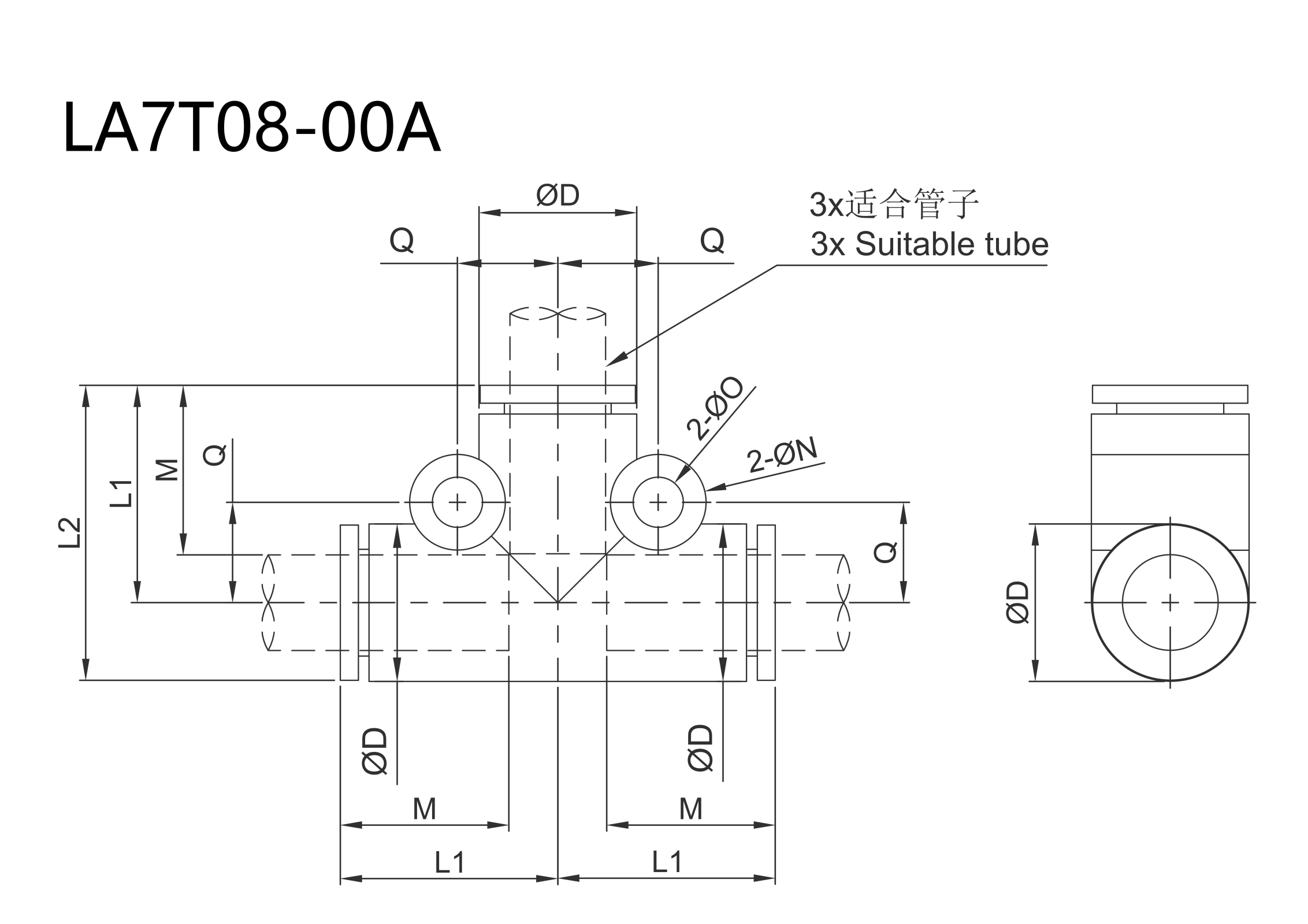 | Tube O.D.mm | Model | D*(mm) | L1(mm) | L2(mm) | M(mm) | Q(mm) | O(mm) | N(mm) | Effective cross-sectional area mm | Minimum Hole Diameter(mm) | Weight | |