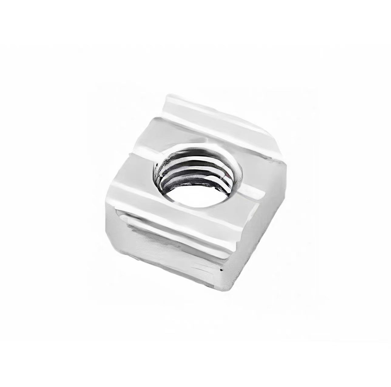 Additional nuts, sometimes also referred to as embedded nuts, slider nuts or square nuts, are a type of nut specifically designed for installation in the T-slots of aluminum profiles. Its core function is to provide a threaded connection point for an independent component (such as a panel, hinge, sensor, etc.) that can be fixed at any position on the profile. Unlike T-nuts that need to slide in from the side of the slot, most additional nuts can be directly inserted from the front of the profile slot and then snapped into the slot by rotating 90 degrees, or directly embedded and self-locking with their special structure.