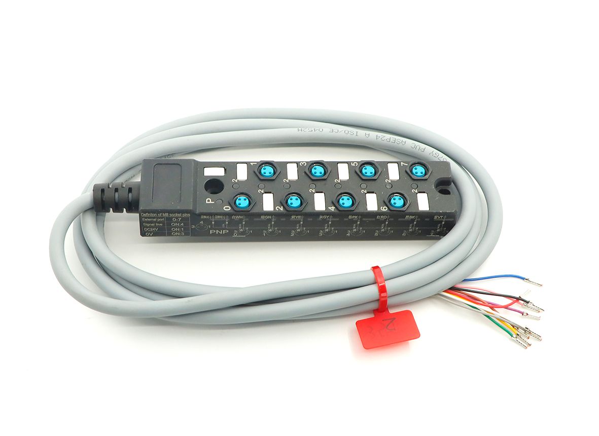 The distribution box is an electrical connection hub installed at the end of the industrial robot's arm. Its core function can be summarized as a "central hub": Central connection: The cables on the robot body (from the controller) are connected to the distribution box with only one thick multi-core cable. Distributed output: The distribution box then provides multiple independent interfaces, which are respectively connected to various devices on the arm-end tool, such as the vacuum generator electromagnetic valve on the vacuum suction cup, the electromagnetic valve of the gripper cylinder, various sensors (vision, force control, proximity switch), etc.