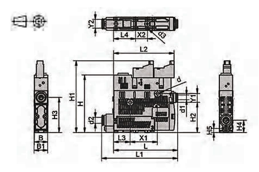 | PN | Model | B | B1 | d | d1 | d2 | d3 | H | H1 | H2 | H3 | H4 | H5 | L | L1 | L2 | L3 | L4 | X1 | X2 | Y1 | Y2 |